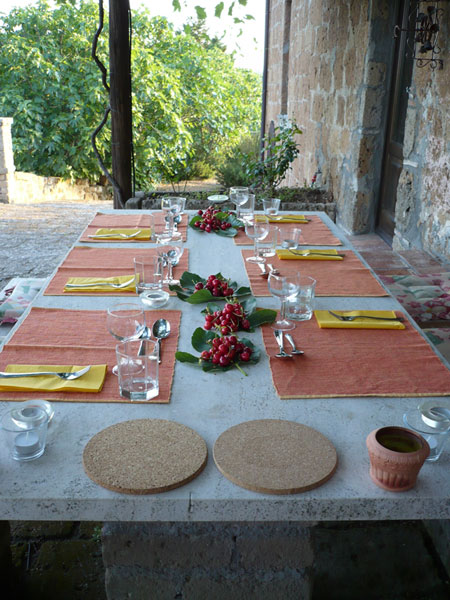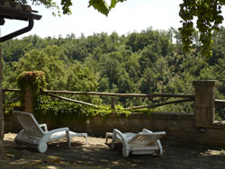 Die Gegend am Treffpunkt der drei Provinzen Toskana, Umbrien und Latium ist bekannt für ihre schöne Landschaft zwischen Meer und Bergen, Seen und Thermen, malerischen Ortschaften, etruskischen Sehenswürdigkeiten, guten Wein und ausgezeichnetes Olivenöl. Das Natursteinhaus mit grossem Garten und herrlichem Rundblick haben wir mit viel Liebe, Sorgfalt und Geschmack restauriert. Wir bieten es für die Zeiten zur Miete an, in der wir selber nicht dort sind. Das wunderschöne Haus hat ca. 180 qm Wohnfläche und ist stilvoll und gemütlich eingerichtet. Im Erdgeschoss sind Wohn- und Esszimmer, ein Zimmer als Studio mit Doppelbett, außerdem die Küche mit Waschmaschine und ein Bad mit Dusche, das von aussen erreichbar ist. Oben sind drei Schlafzimmer, eines mit Doppelbett, eines mit zwei Einzelbetten und Toilette, und eines mit zwei Doppelbetten (Innenfotos). Bis zu sieben Personen können in dem Haus wohnen. An zwei Seiten des Hauses haben Sie grosse, teilweise mit Strohdach und Weinreben überdeckte Terrassen mit Esstischen und Sitzbänken. Oberhalb des Hauses ist eine Sitzecke mit Panorama-Blick. Liegestühle, Hängematten und ein Grill stehen zur Verfügung. |